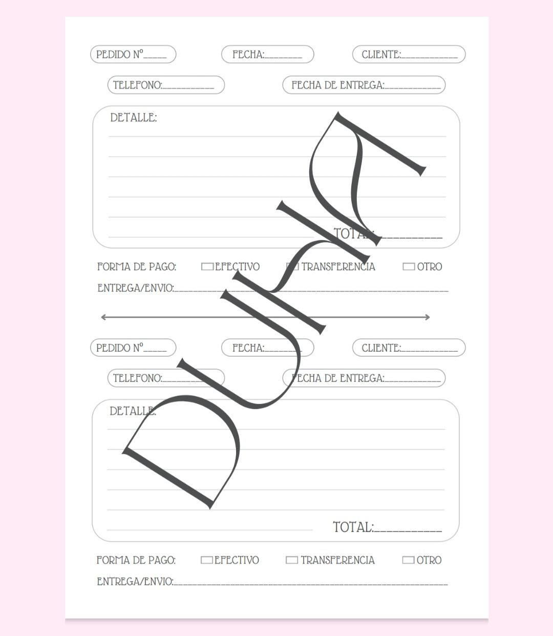 Este archivo contiene una agenda de pedidos medida final A5 de 100 hojas.