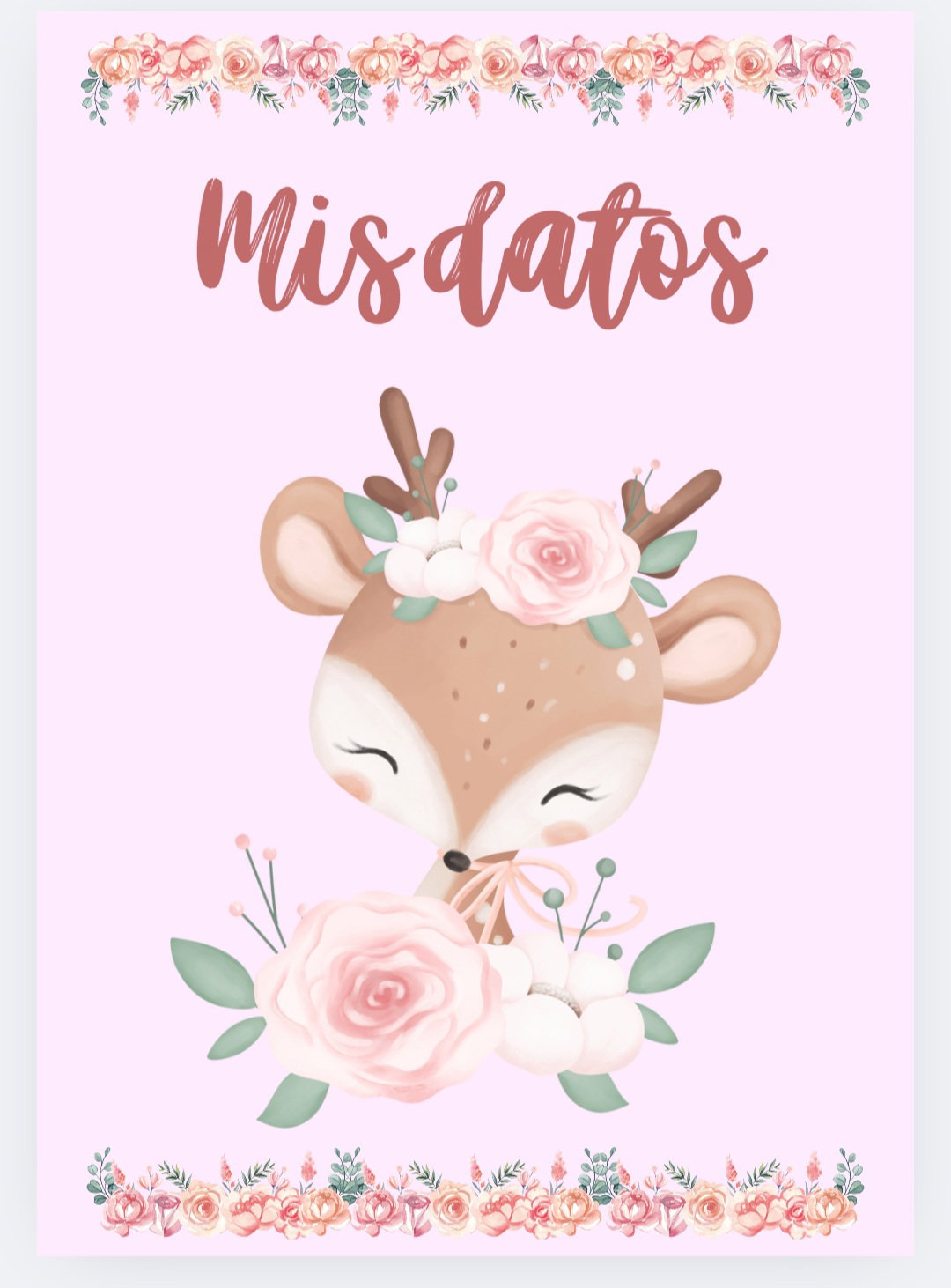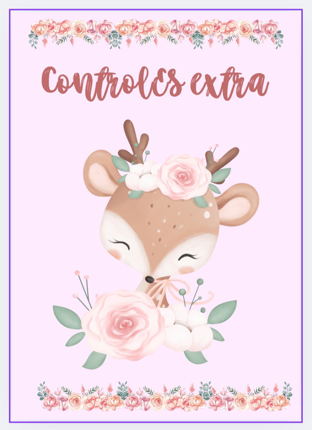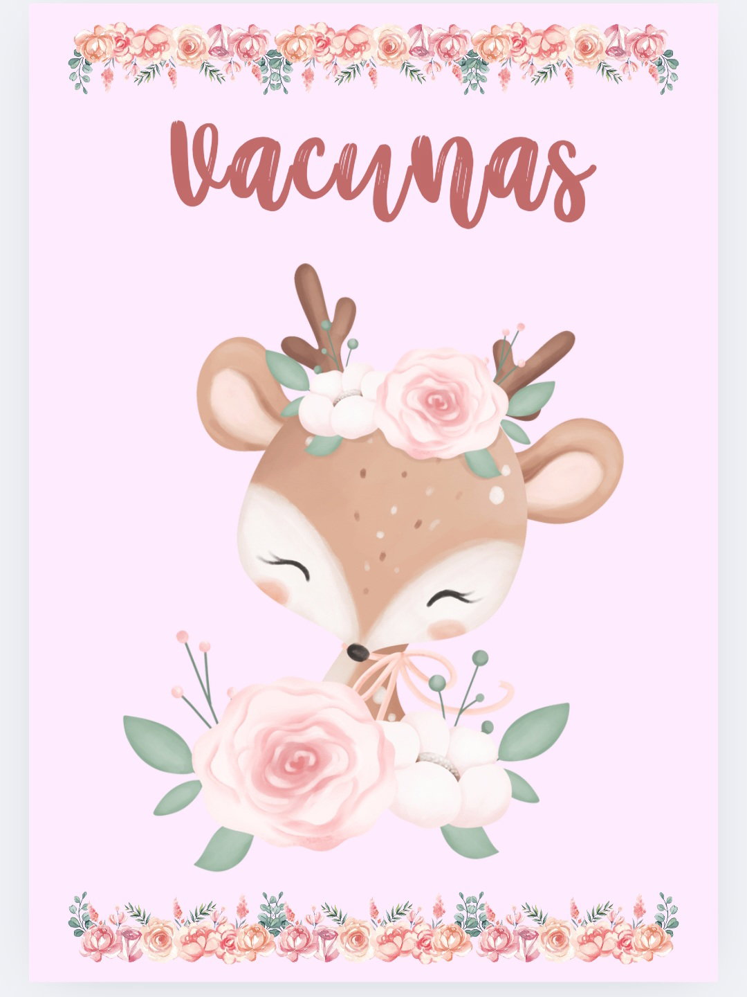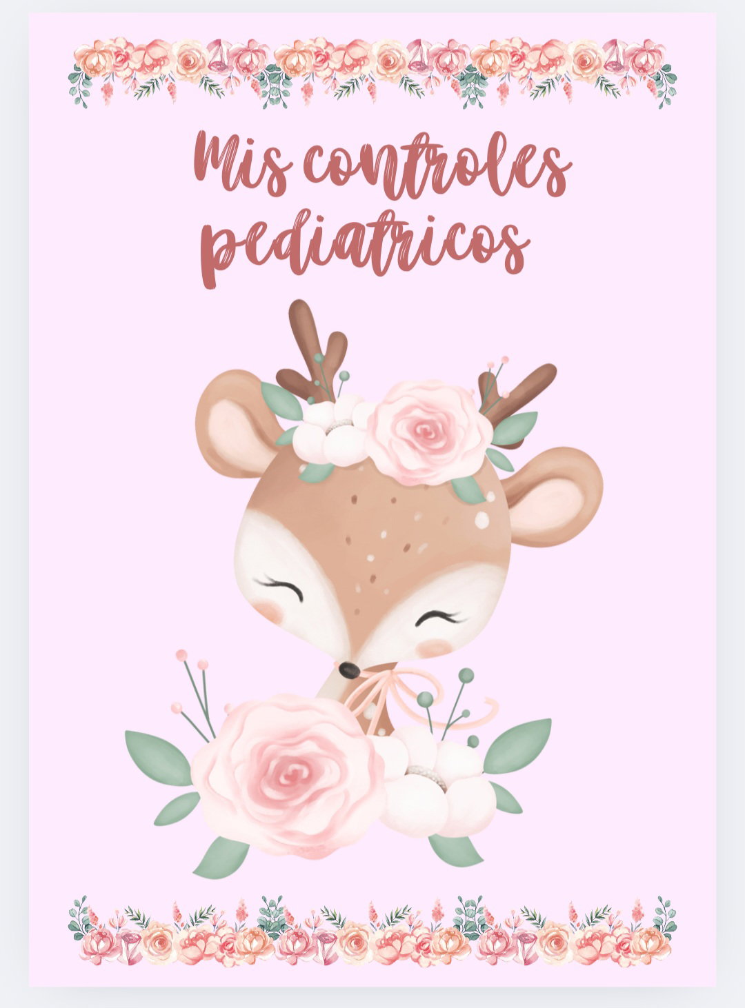 Imprimible de agenda pediátrica tematica ciervo bebe con flores.