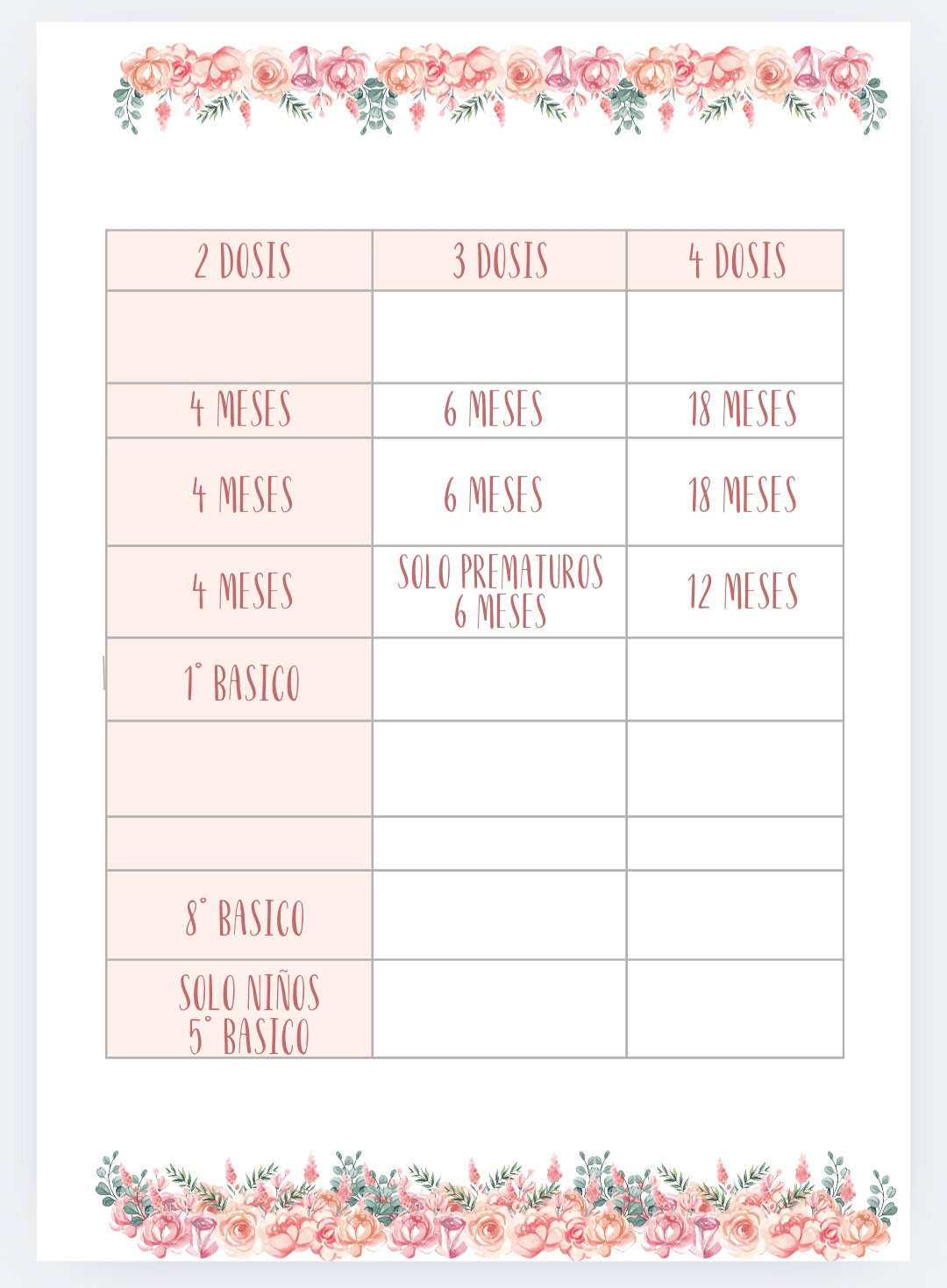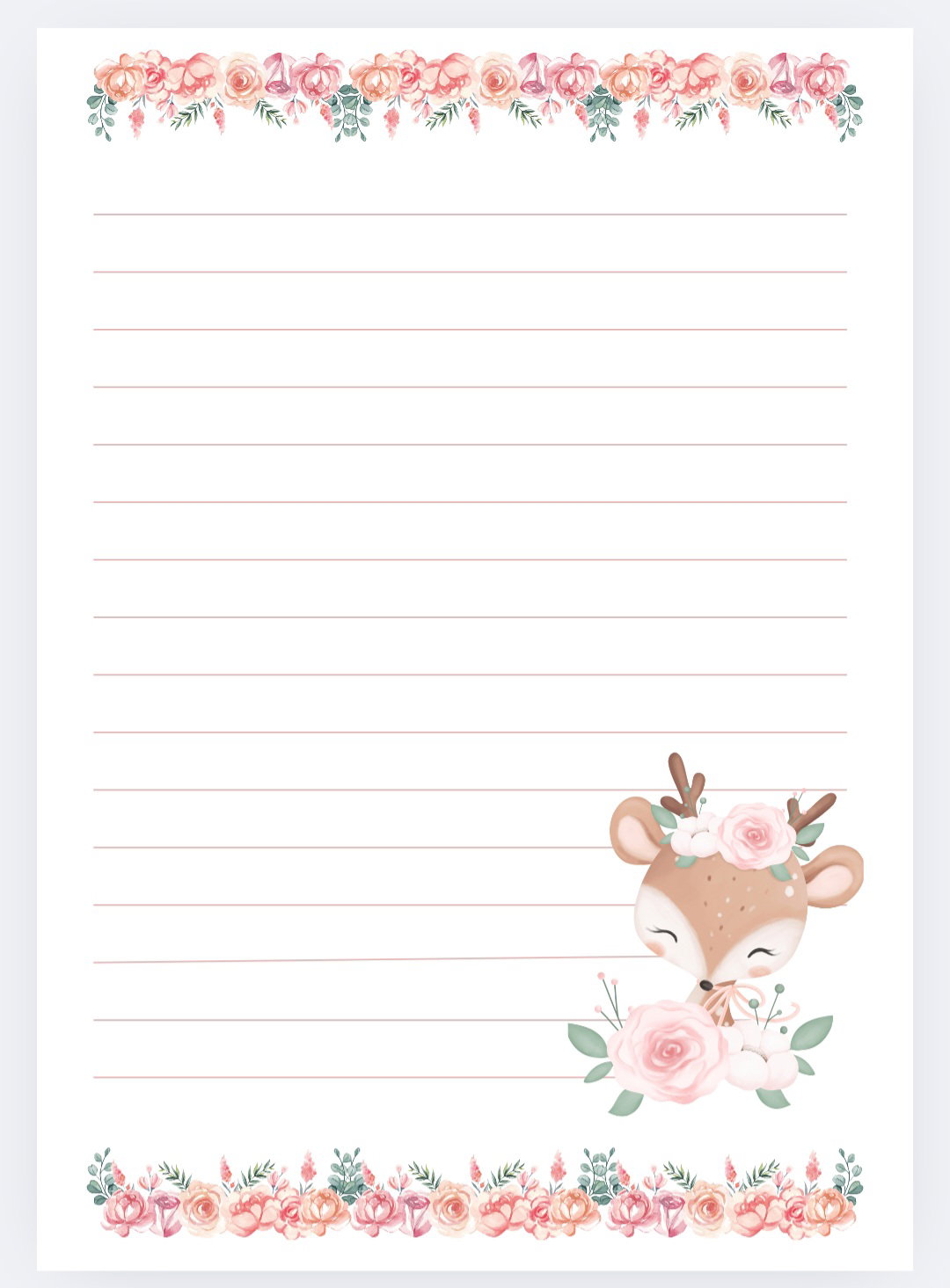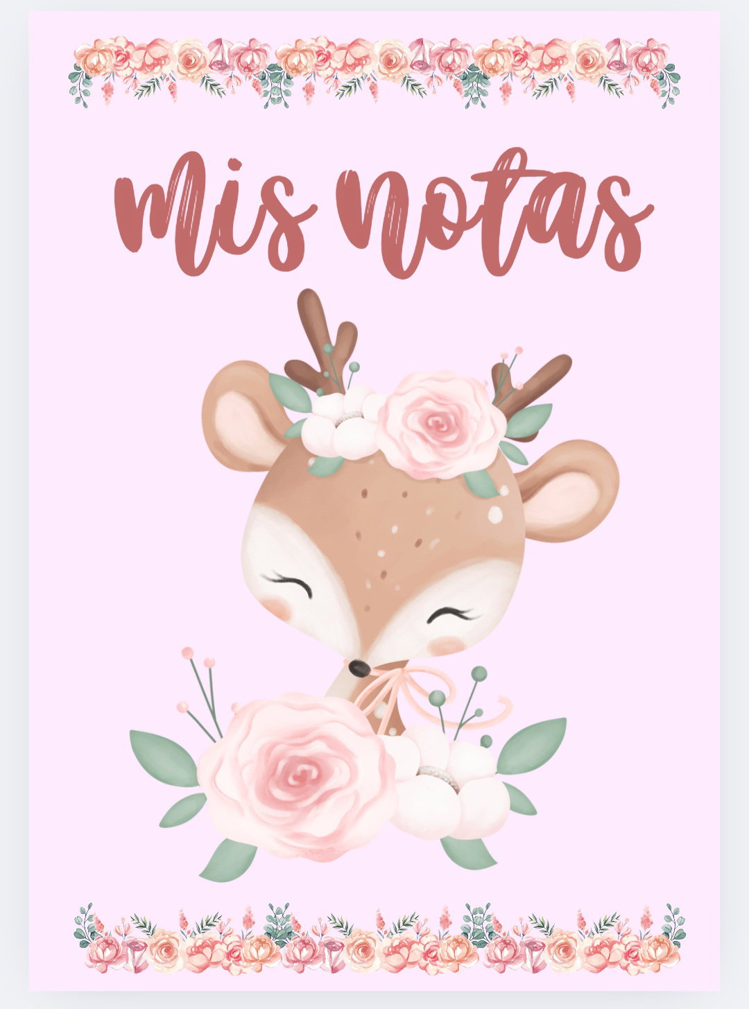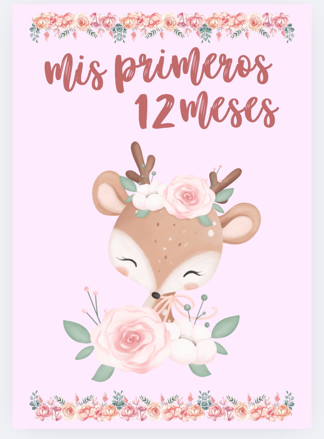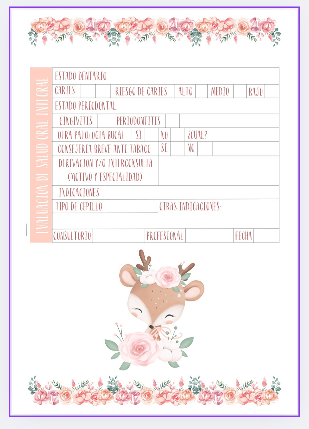 Imprimible de agenda pediátrica tematica ciervo bebe con flores.