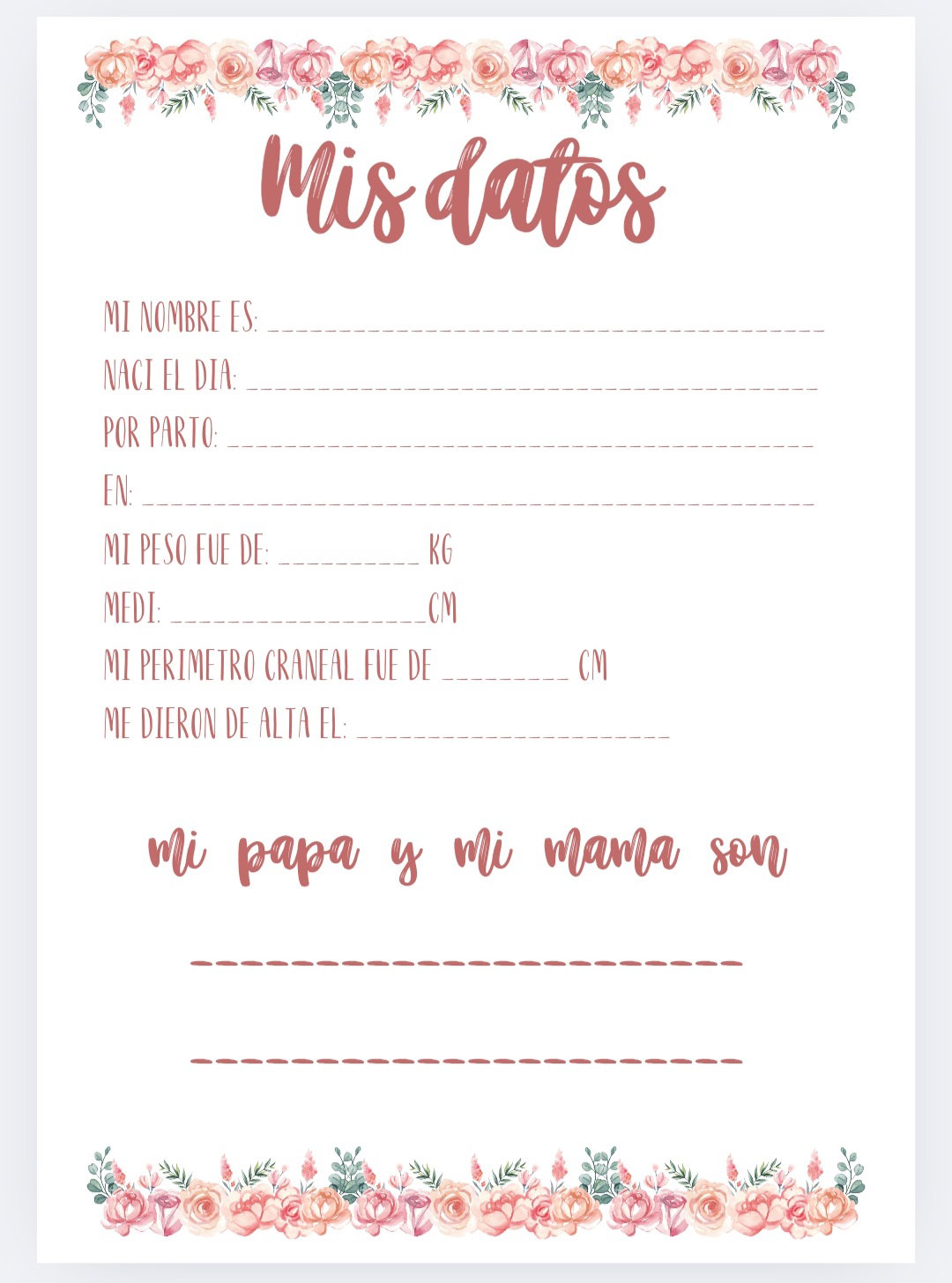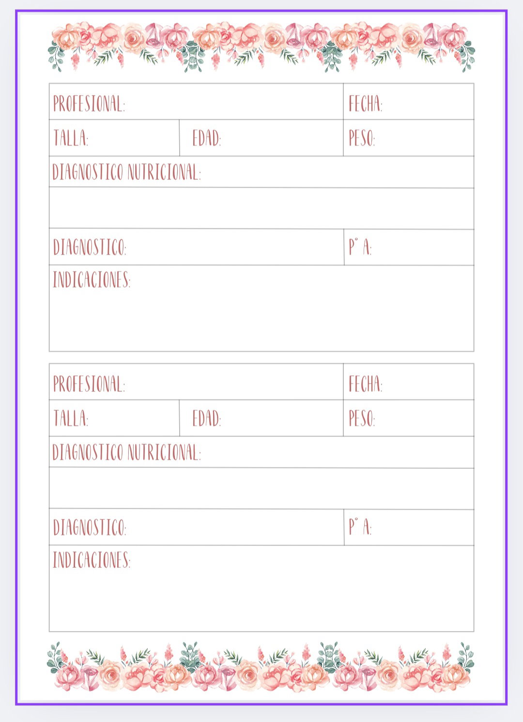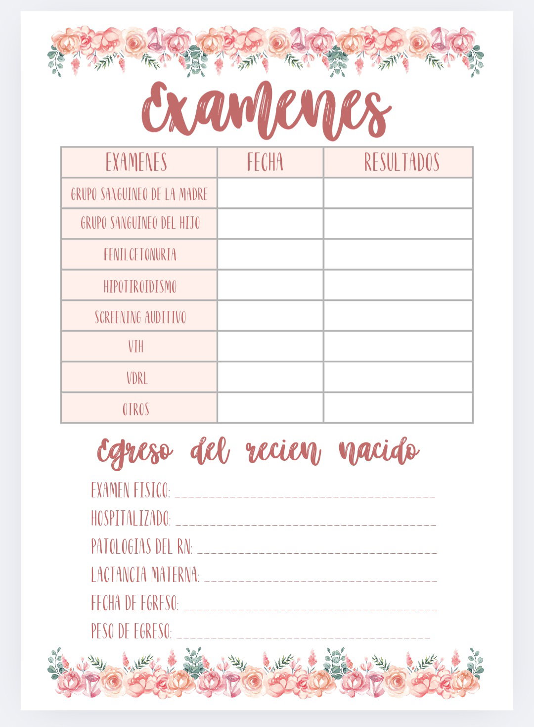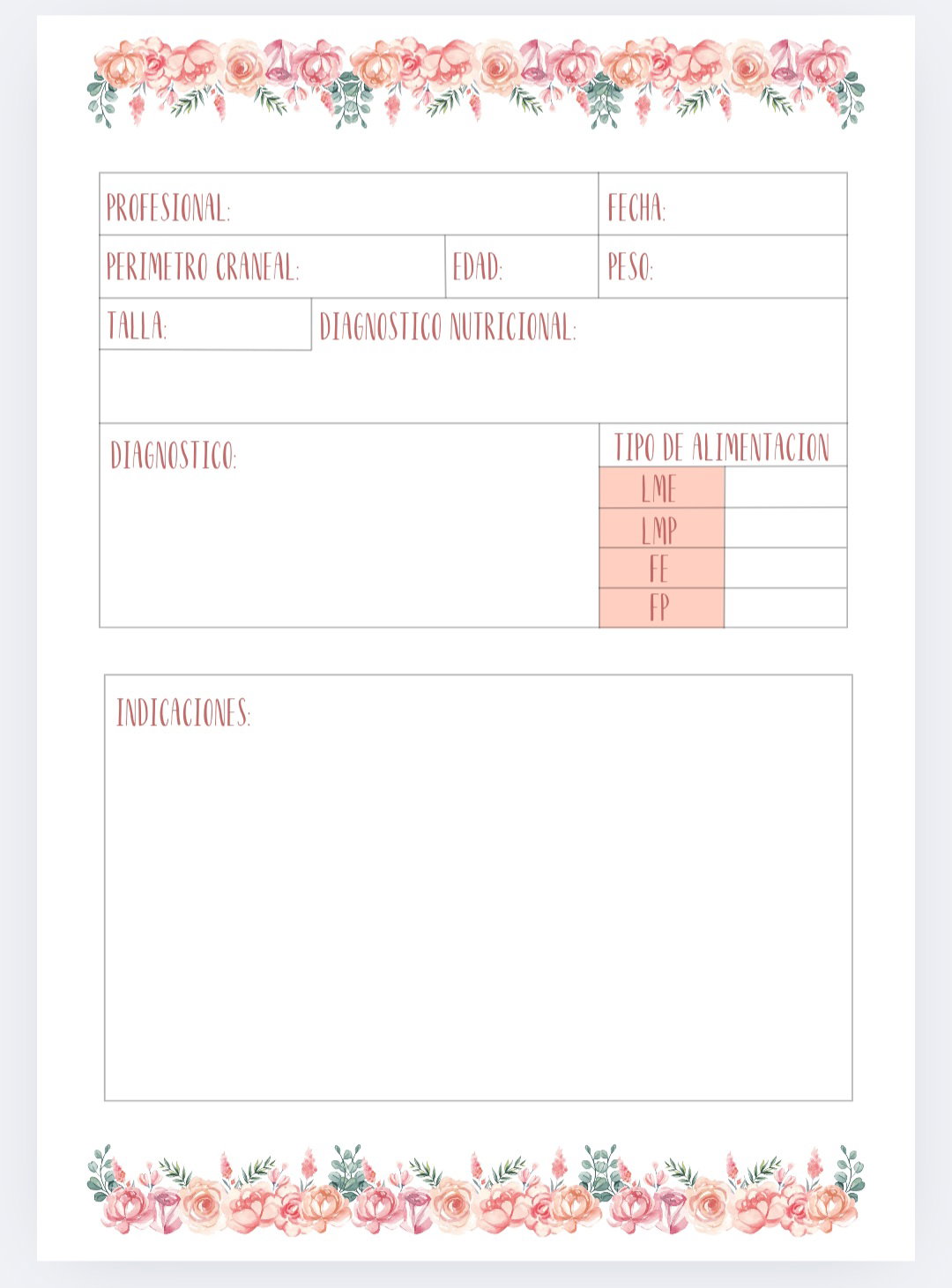 Imprimible de agenda pediátrica tematica ciervo bebe con flores.