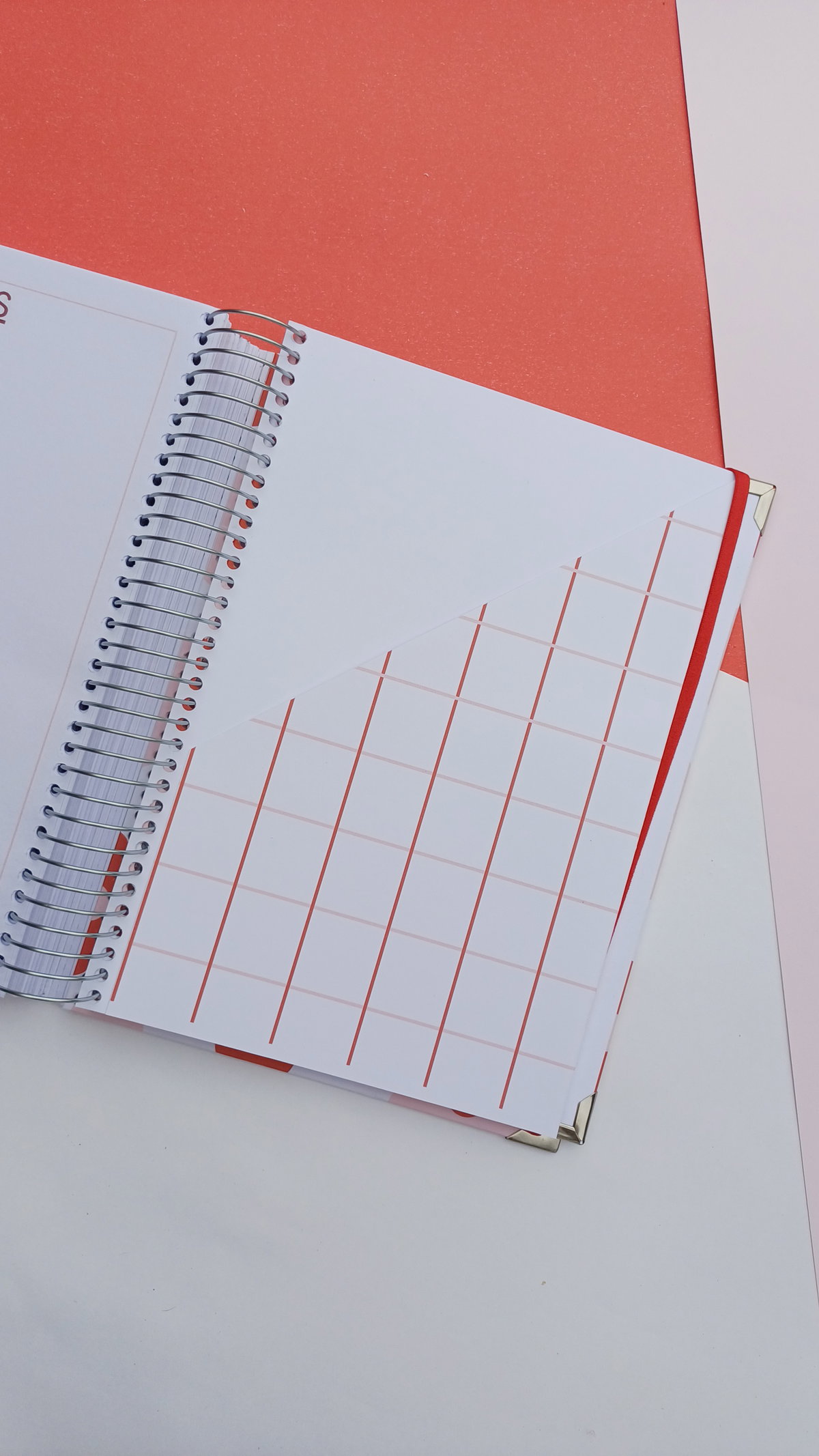 Tamaño A5, tapa dura con elástico para cerrar y esquineros metalicos ✅️