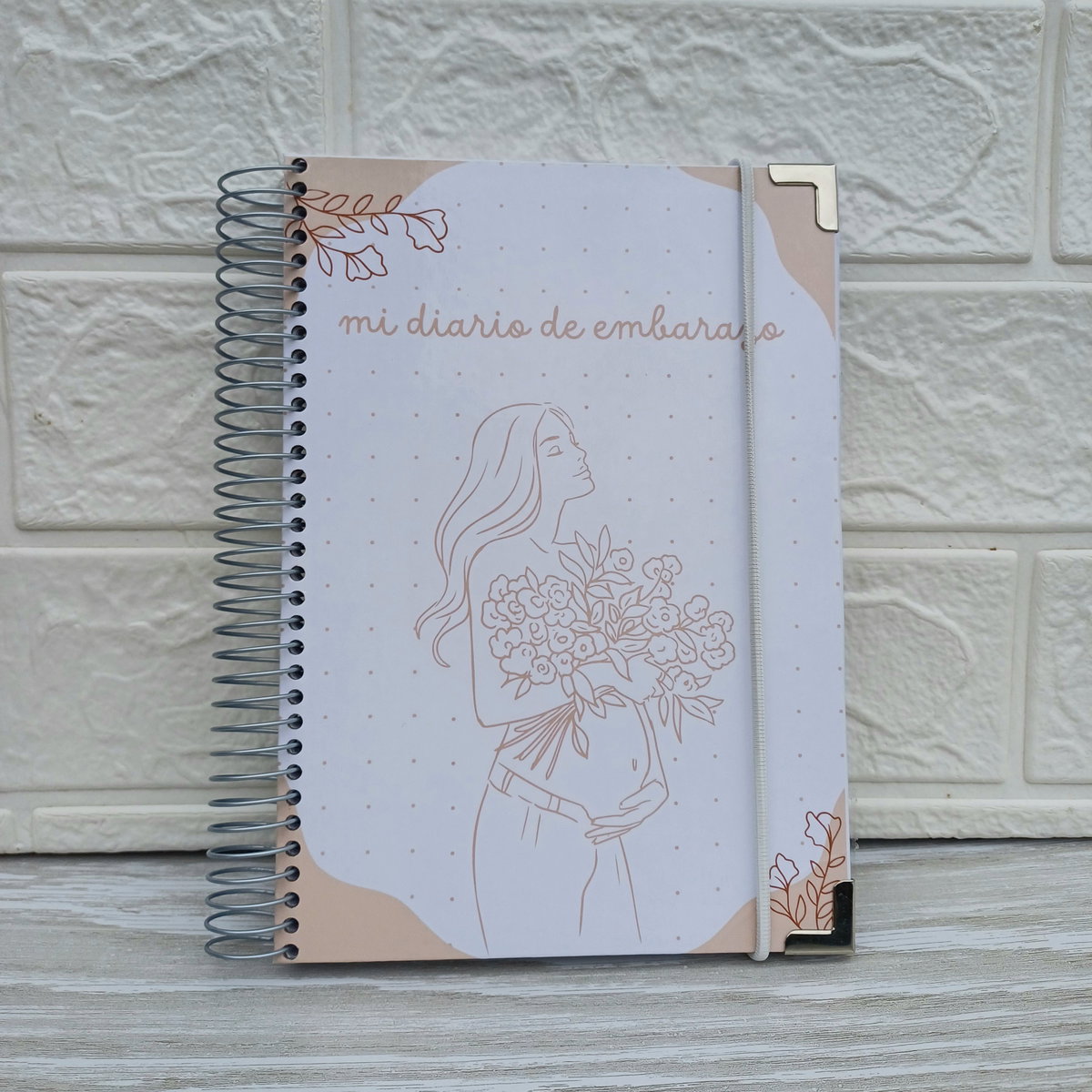 Cuaderno de embarazo tamaño A5, tapa dura laminada con elástico y esquineros metalicos, el diseño de tapa es personalizado, una vez abonado el pedido nos comunicamos para coordinar el modelo.