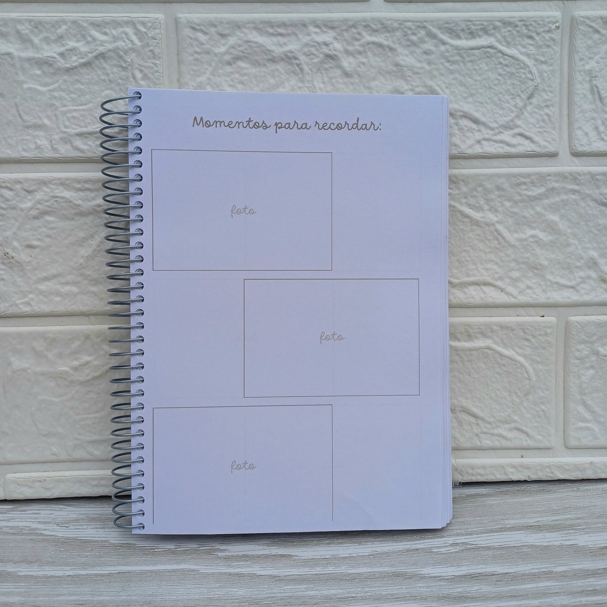 Y luego 3 divisiones por trimestre con espacio para fotos y anotaciones.