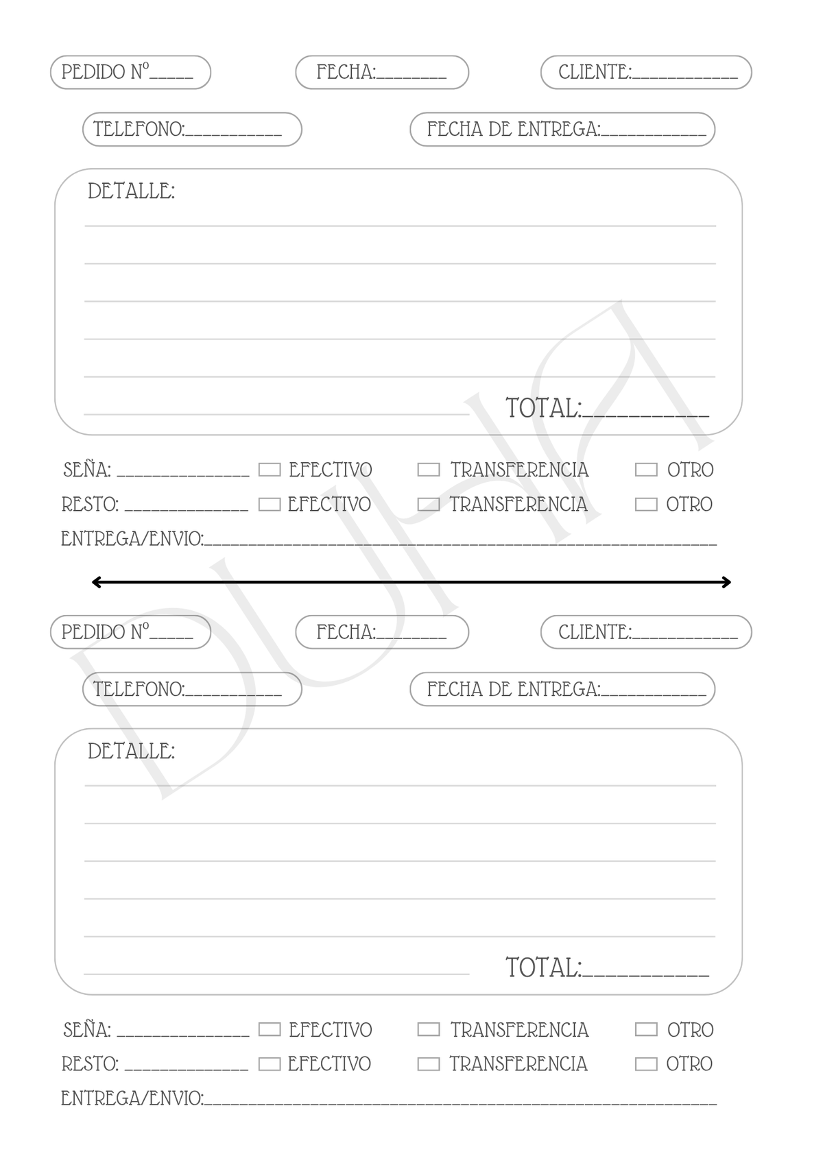 CUADERNO DE PEDIDOS - TAPA PLASTIFICADA